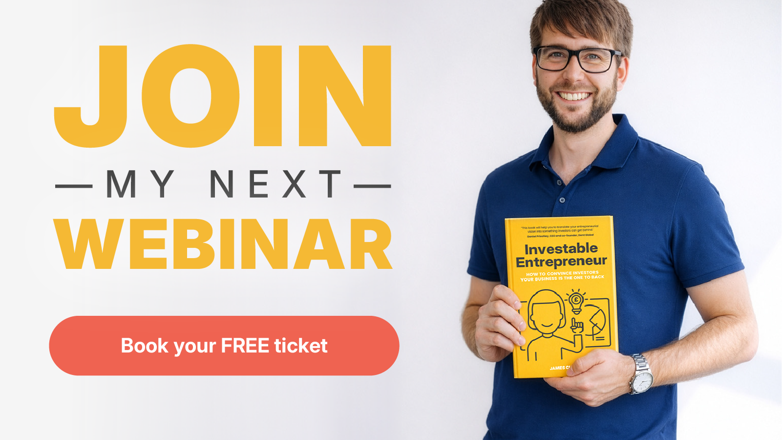 Live Workshop: How to make investors love you with James Church. Limited spaces. Click here to register